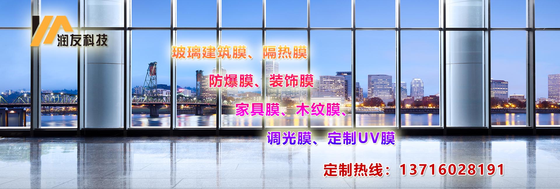 北京市潤友科技發(fā)展有限責任公司,是一家專注于建筑玻璃膜銷售、施工為一體、是目前專業(yè)建筑玻璃貼膜領袖企業(yè)。   公司致力于玻璃建筑膜、隔熱膜、防爆膜、裝飾膜、調光膜、木紋膜、家具膜、定制UV膜等等的應用推廣,并在節(jié)能、環(huán)保、技術創(chuàng)新等領域獲得多項顯著成績,多款式、多風格不同角度滿足客戶多元化需求。 ????經過多年的探索研究公司制定內部施工標準,從設計效果、施工規(guī)范、工地管理、質保維護等方面嚴控源頭規(guī)避施工隱患,為客戶打造安全節(jié)能環(huán)保的體驗環(huán)境。對行業(yè)的發(fā)展和施工工程的標準化提升都具有重要意義,同時也奠定公司在建筑膜行業(yè)的地位。 ????公司自成立于2005年,公司自經營建筑玻璃膜以來,承接了石景山奧運場館,釣魚臺國賓館,國務院機關事物管理局等大型建筑玻璃貼膜施工任務。積累了豐富的施工經驗,掌握了各種新型施工技術。多年來恪守“質量第一、客戶至上”的服務宗旨、遵循“優(yōu)質、高效、團結、奉獻的工作態(tài)度、節(jié)能減排、為您創(chuàng)建舒適的家居及辦公環(huán)境。